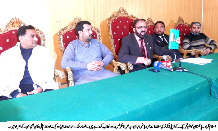 پاکستان عوامی تحریک کے مرکزی رہنما عمر ریاض عباسی اور دیگر کی پریس کانفرنس