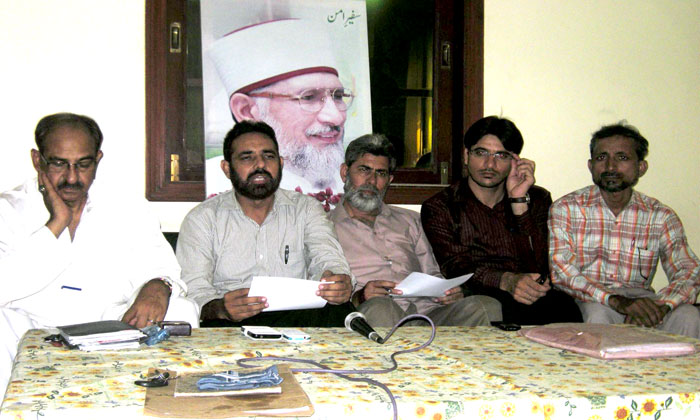 انہوں نے کہا پاکستان عوامی تحریک عنقریب قوم کو ان غلام، کرپٹ اور نا اہل حکمرانوں سے چھٹکارا دلا کر انکے غصب شدہ حقوق بازیاب کرائے گئی۔ قوم کا اصل دشمن موجودہ کرپٹ ظالمانہ اور اجارہ دارانہ سیاسی ا نتخابی نظام ہے۔ جسکی وجہ سے امیر امیر تر اور غریب غربت و افلاس کی چکی میں پس رہا ہے۔ قوم کو اپنا مقدر بدلنے کیلے باہر آنا ہوگا۔ قوم ہمارے ساتھ ہے کیوں کہ ہم سیاست نہیں ریاست بچانے نکلے ہیں ریاست ہوگی تو سیاست ہوسکے گی۔ حکمران اپنی سیاست بچا رہے ہیں انہیں ریاست کی فکر نہیں ہے۔ تھر میں ایک طرف بھوک، افلاس، صحت کی سہولتوں کی کمی سے انسانیت کا قتل ہورہا ہے تو دوسری طرف ارباب اقتدار عیاشیاں کررہے ہیں۔