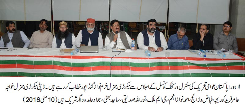 لاہور (10 مئی 2016) پاکستان عوامی تحریک کی سنٹرل ورکنگ کونسل کے اجلاس سے خطاب کرتے ہوئے سیکرٹری جنرل خرم نواز گنڈاپور نے کہا ہے کہ آج سے تین سال قبل 11 مئی 2013 کے دن غیر آئینی الیکشن کمیشن نے فراڈ الیکشن کروائے اور فراڈ الیکشن کروانے والے ممبرز آج بھی تنخواہوں کے نام پر حرام کھارہے ہیں اور فراڈ الیکشن کا نتیجہ آج پوری قوم اور ادارے بھگت رہے ہیں۔ 11 مئی کو سیاہ دن سمجھتے ہیں۔ آئینی الیکشن کمیشن کی تشکیل اور انتخابی اصلاحات کے حوالے سے ڈاکٹر طاہرالقادری نے تاریخ ساز لانگ مارچ کیا۔ آئین کے مطابق الیکشن کے انعقاد کے حوالے سے تحریری معاہدے سے انحراف کرنے والے بھی آج رو رہے ہیں۔ سی ڈبلیو سی کے اجلاس میں ڈپٹی سیکرٹری جنرل خواجہ عامر فرید کوریجہ، بشارت جسپال، فیاض وڑائچ، احمد نواز انجم، جی ایم ملک، ساجد بھٹی، جواد حامد، ڈاکٹر تنویر اعظم سندھو، تنویر خان، مظہر علوی، عرفان یوسف، عائشہ مبشرودیگر نے خطاب کیا۔